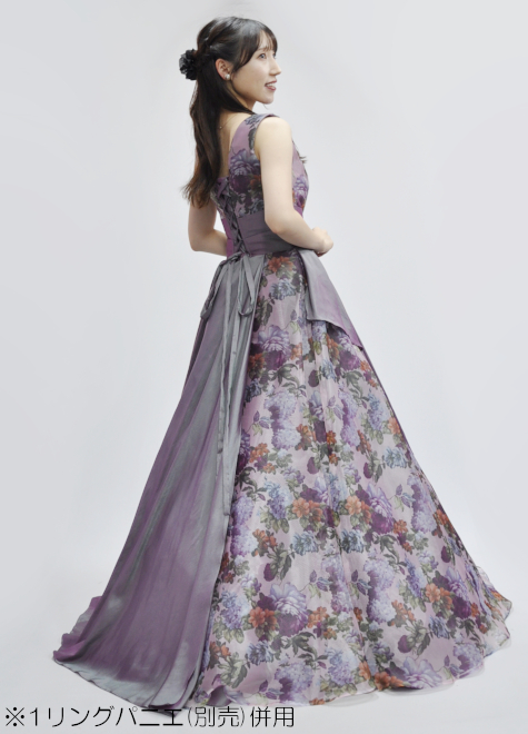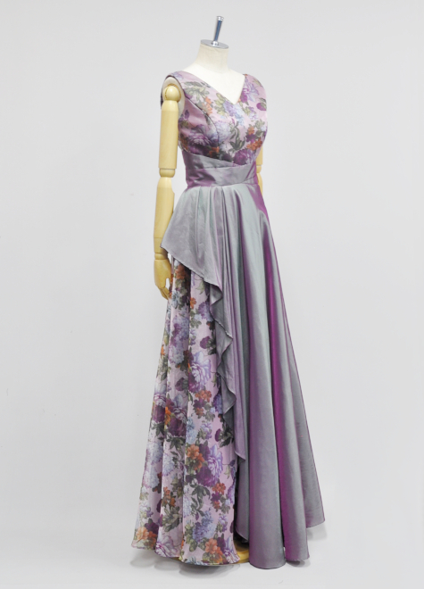 スカート部分は左右で見えるデザインが異なり、どちらもお楽しみいただけます。特にピアノを演奏される方ですと、側面を観客様へ見せる機会が多いかと思いますので