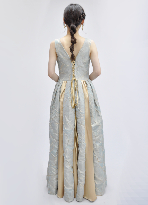 アジアートが得意な異素材を組み合わせたデザインドレス。