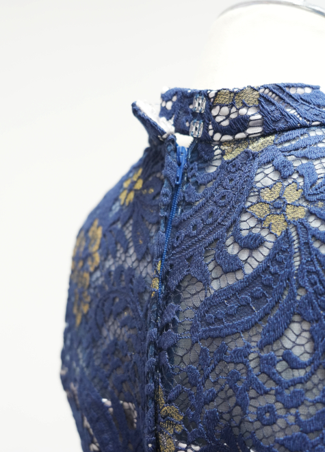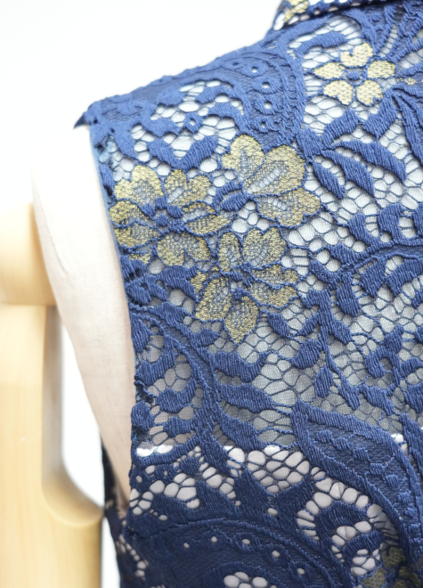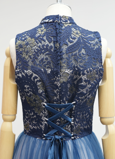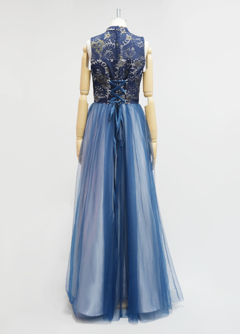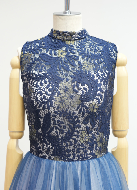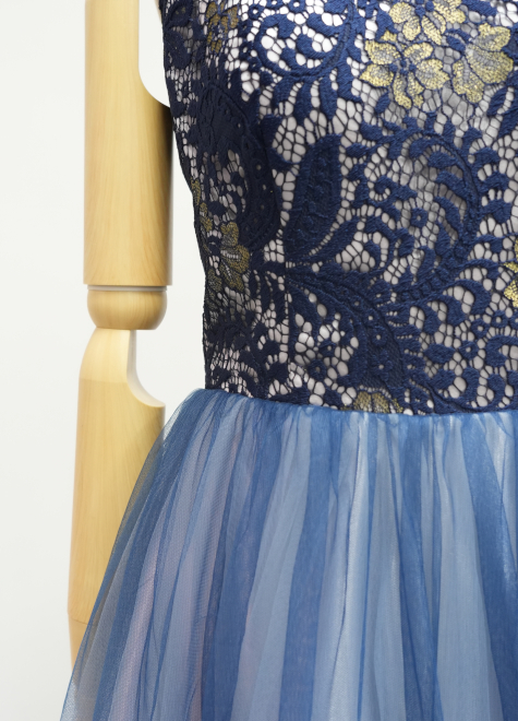 ネイビーチュールの下はシルバーのサテン生地を組み合わせており、