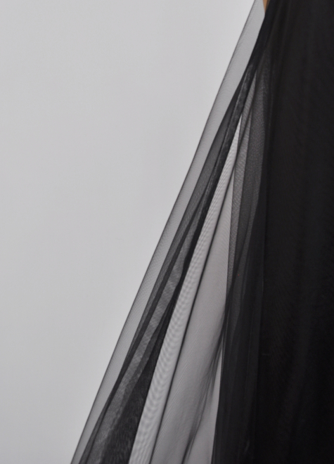 裏地のサテン生地の上からチュール生地を2枚重ね、ふんわりとしたシルエットになります。