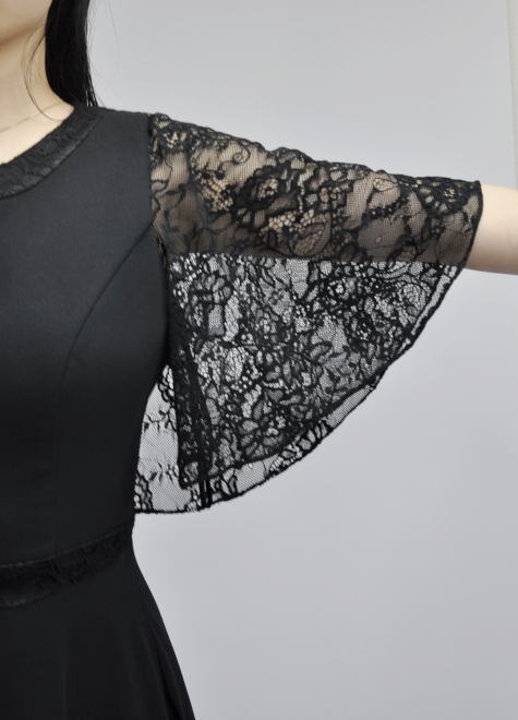 肩の動きを制限しない袖付きなので、演奏を妨げられることなく二の腕を上品な透け感でカバーしてくれます。