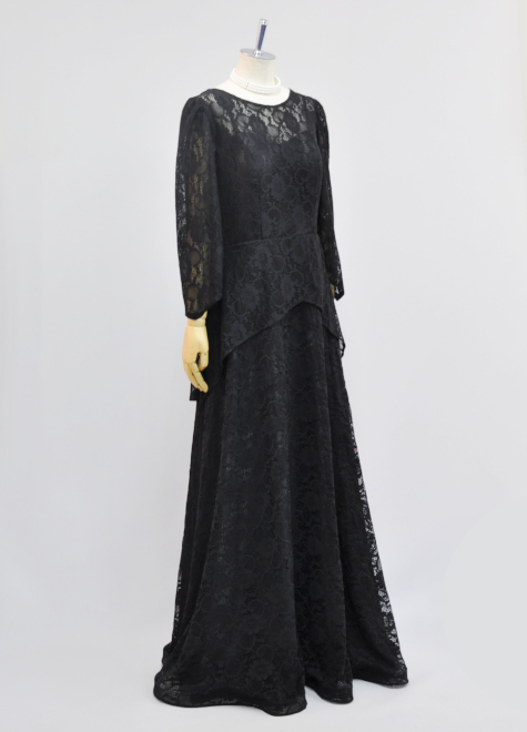 【全身総レースの袖付き黒ドレス】