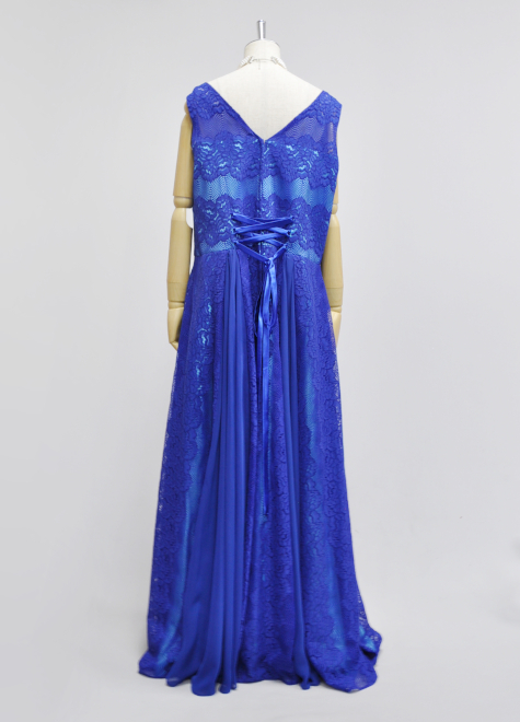スカート部分には四か所にブルーのシフォン生地を差し込み、生地の違いが飽きないデザインになっております。