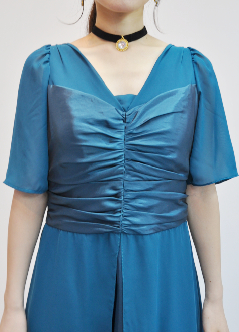 ワントーンでまとまりのあるカラーで、シフォン生地とタフタ生地の組み合わせが魅力的な商品です。