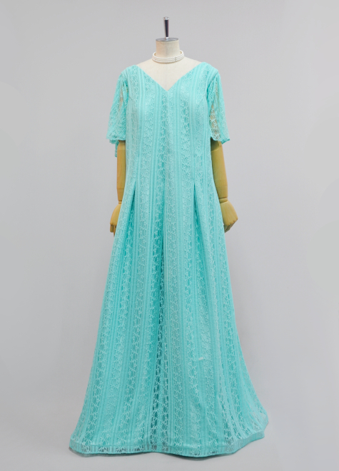 ワントーンでシンプルなドレスですが、レース生地の柄がゴージャスなのでとても高貴な印象にまとまります。