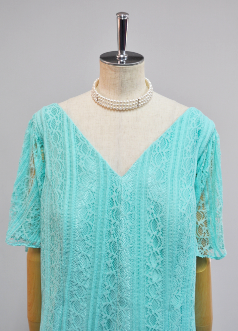 ゆったりとした着心地が特徴的な大きいドレスです。こちらの色はミントグリーンです。