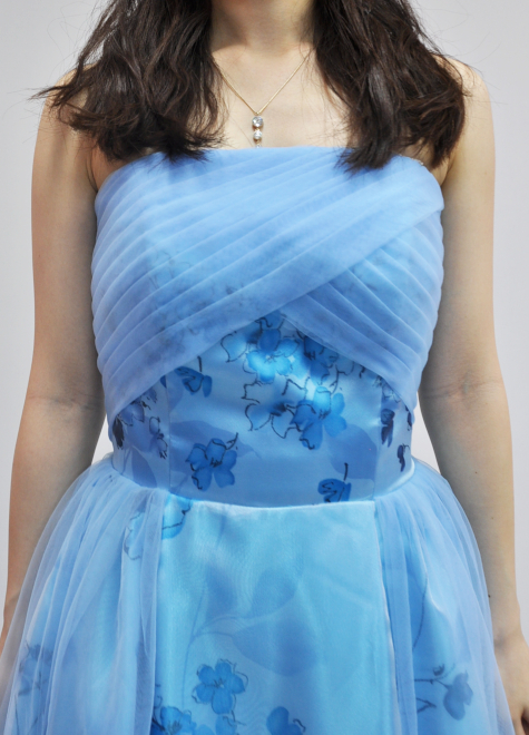 裏地のサテンに、表は花柄のオーガンジーとチュールの組み合わせ。