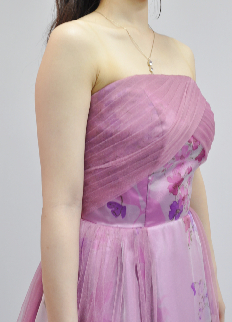 裏地のサテンに、表は花柄のオーガンジーとチュールの組み合わせ。