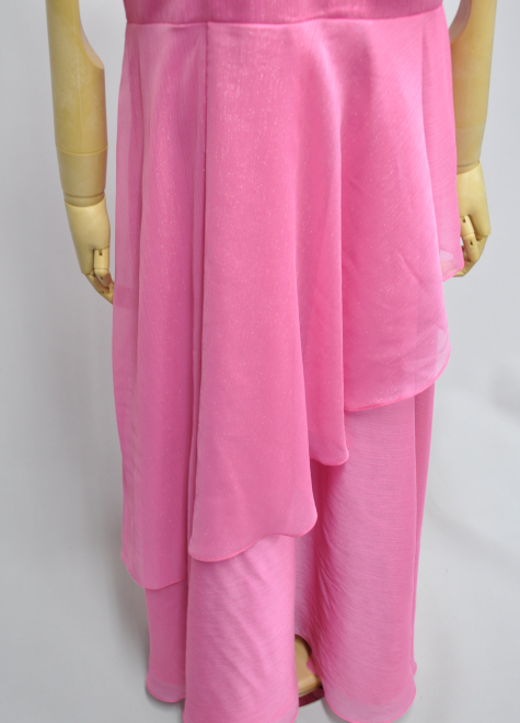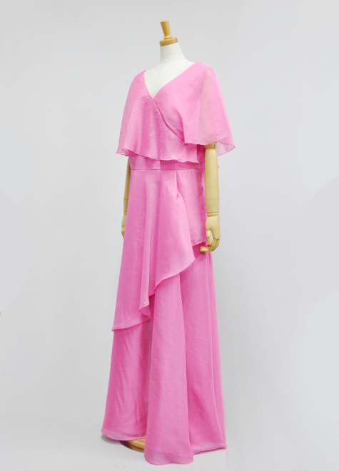 上半身は右から左に向けて斜めに一枚、スカート部分では左から右にかけて斜めに一枚カットし、計算されたデザインが見た目を華やかにしてくれます♪