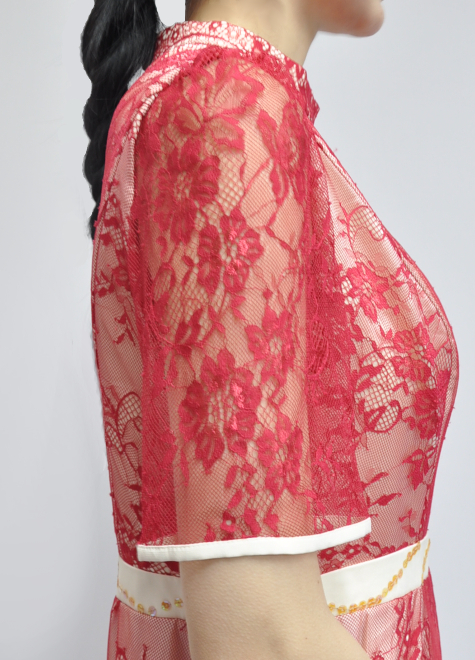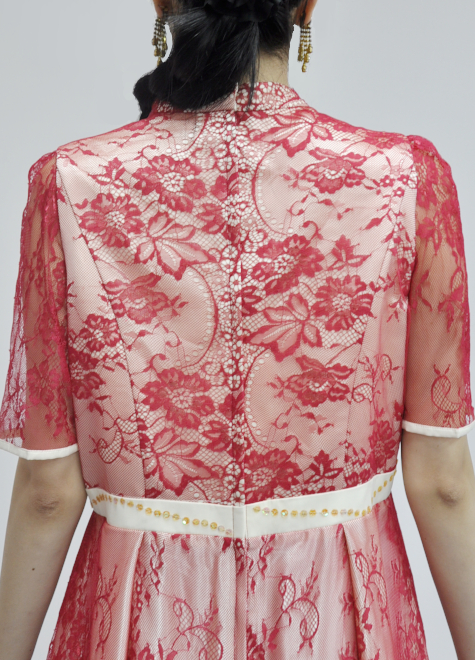 裏生地のアイボリー生地に赤いレース生地が華やかさを引き立ててくれます。