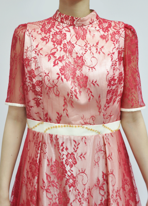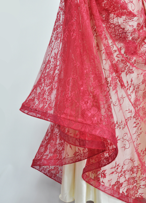 裏生地のアイボリー生地に赤いレース生地が華やかさを引き立ててくれます。
