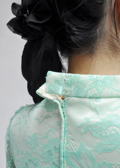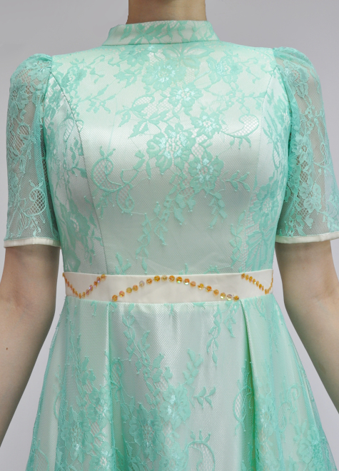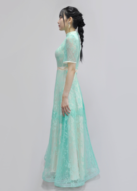 背面のアイボリー生地に明るいミントグリーンが爽やかで、レース素材が華やかさを引き立ててくれます。