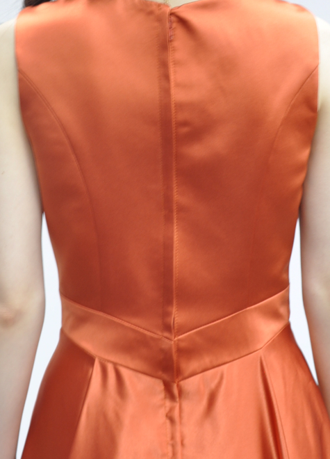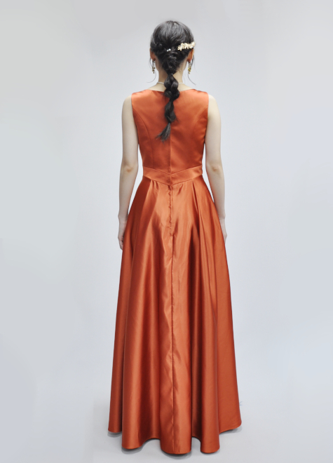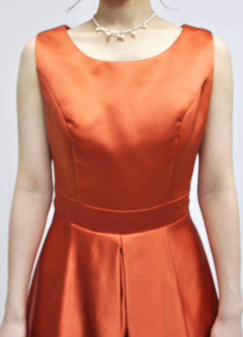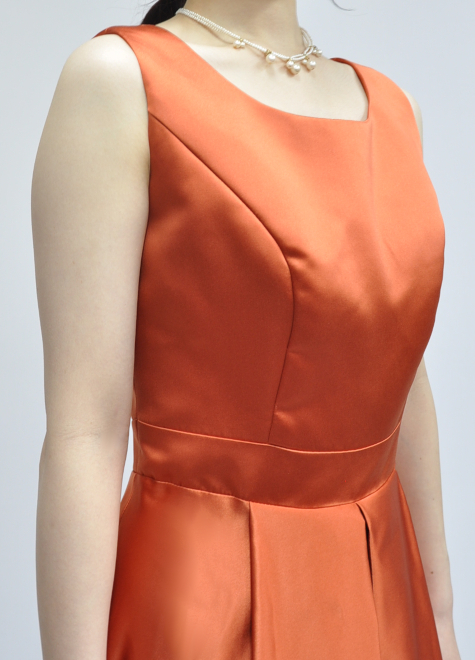 ワンカラーのシンプルなドレスなので、はっきりと発色するサテン生地を使用しました。