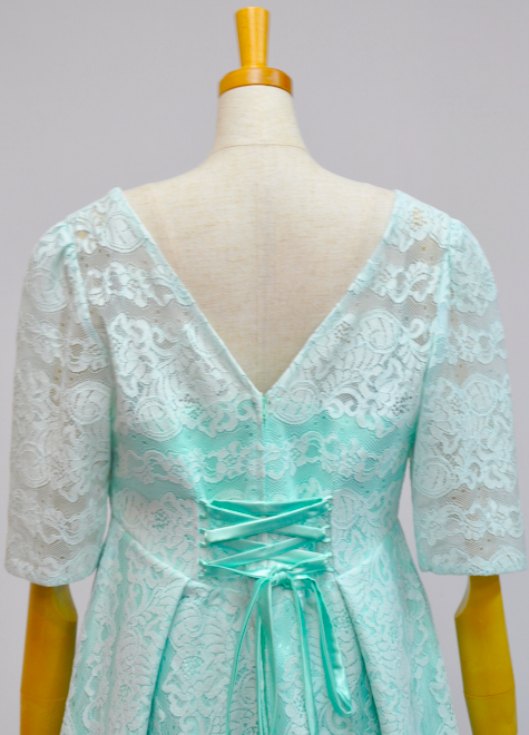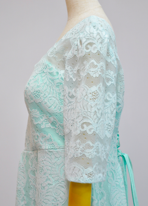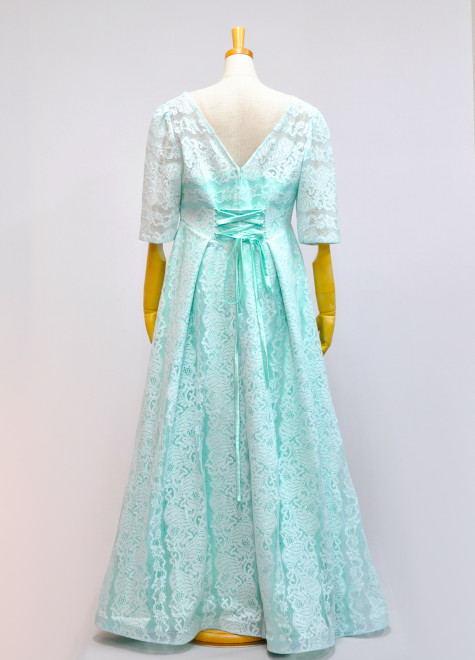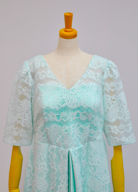 可愛らしいレース袖付きのミントグリーンドレスです。