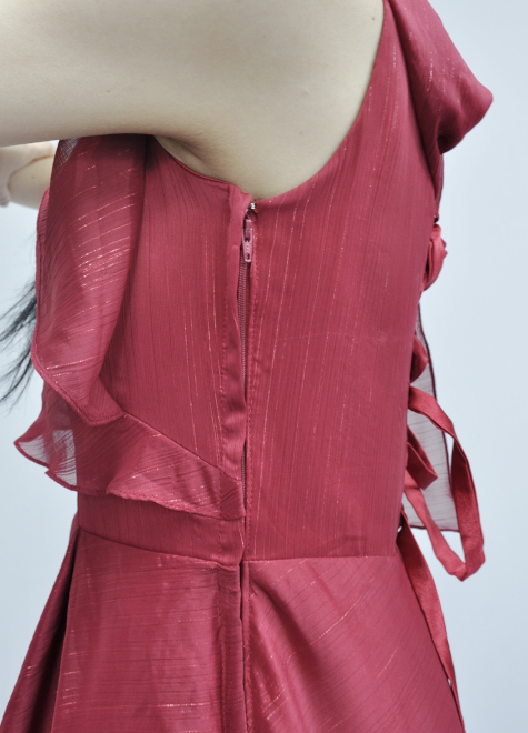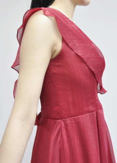上半身は右から左に向けて斜めに一枚、スカート部分では左から右にかけて斜めに一枚カットし、