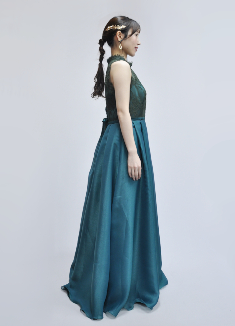 スカート部分はフレアが広がり、流れるようなシルエットに仕上げました。