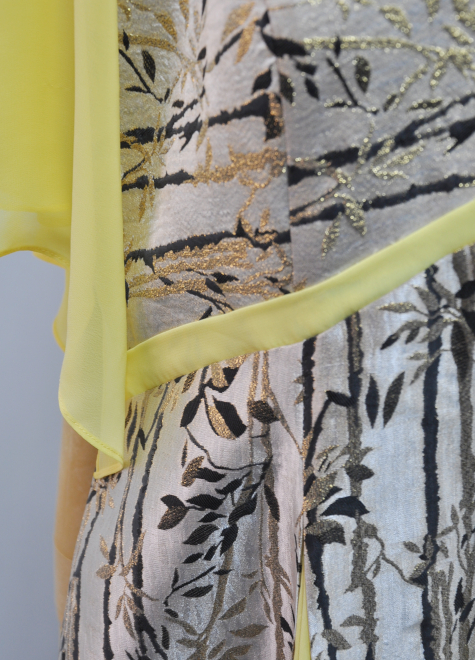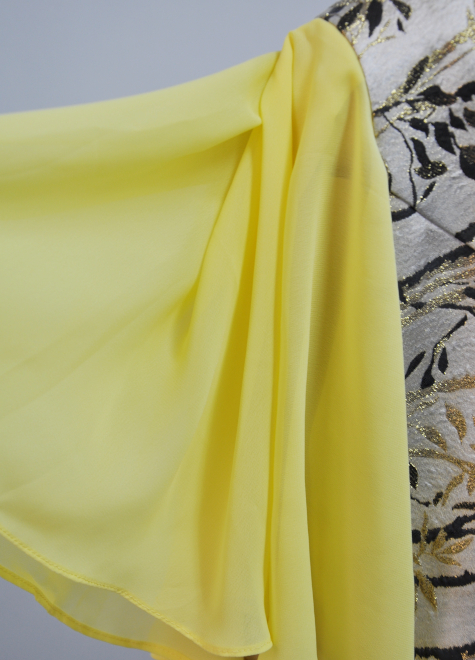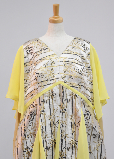 高級感あふれるジャガード生地となめらかなシフォン生地のMIXが、華やかさと柔らかさを演出します。
