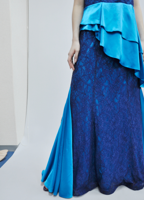 ・スカートにはサテン+レースを使用し、上品な落ち感があります