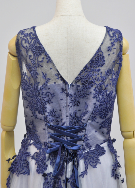背面編み上げスタイルで、1サイズ前後の調節が可能です。
