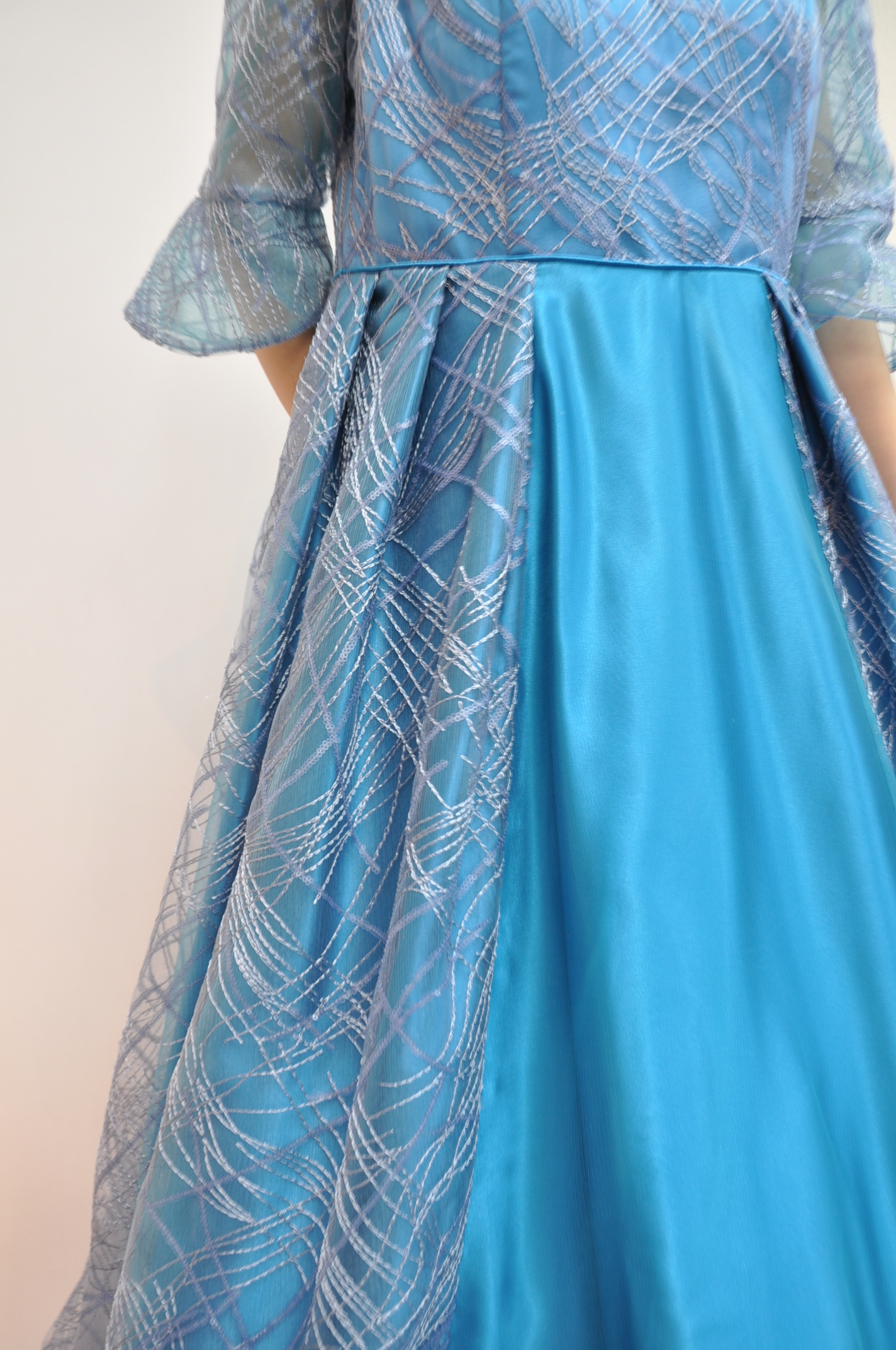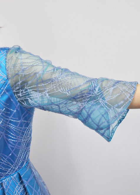 ・生地スバンコール 薄ブルーレース ・2個取り外し可能コーサジュ付き ・肘隠れる袖のながさ ・スムーズに着脱できる様背中にファスナーがあります