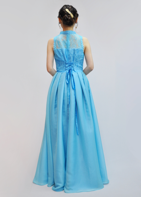 スカート部分はフレアが広がり、流れるようなシルエットに仕上げました。