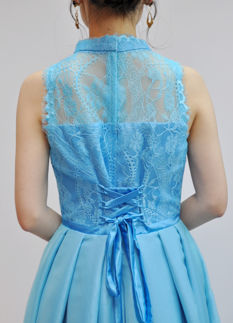 後ろの肩から肩甲骨までは、レース生地のみでさりげない肌見せ。
