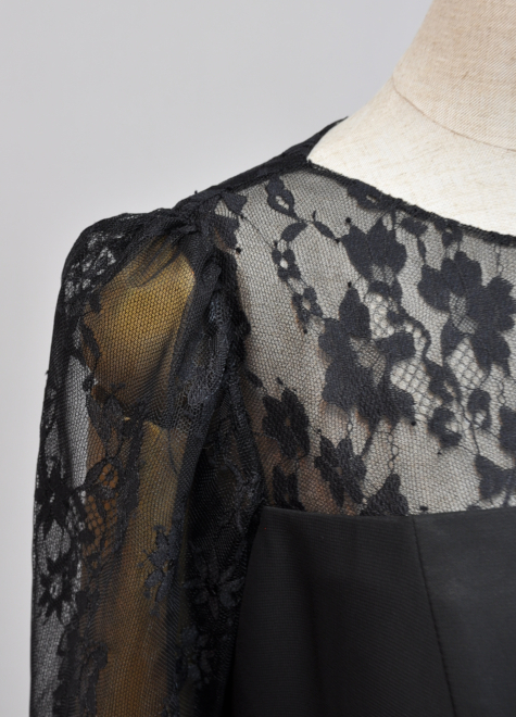・ボリュームのあるレーススリーブは肩や腕を華奢に見せて気になる部分をすっぽりカバー。