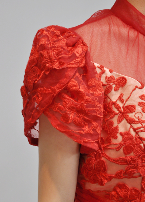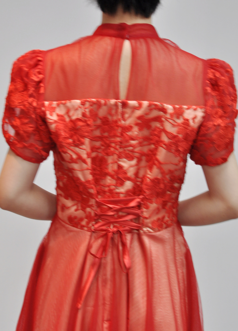 ・立体的な赤レース生地、スカート部分ソフトチュール