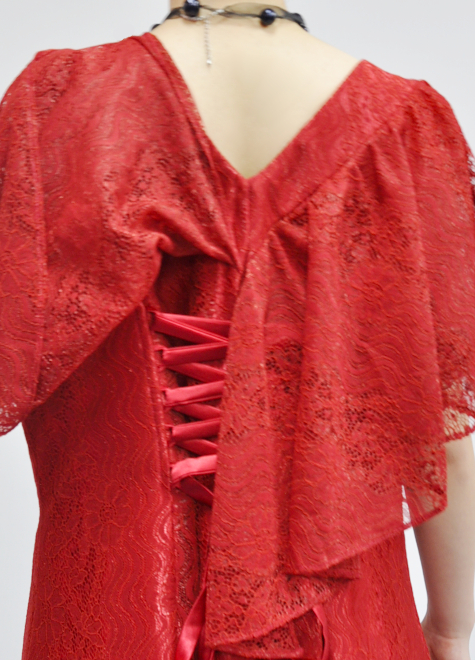 ワンカラーでシンプルなドレスですが、レース生地の柄がゴージャスなのでとても高貴な印象にまとまります。