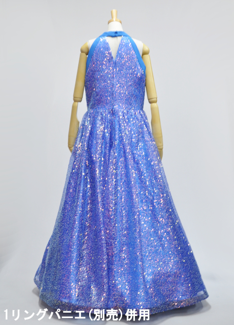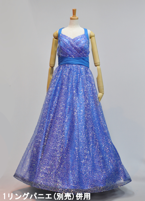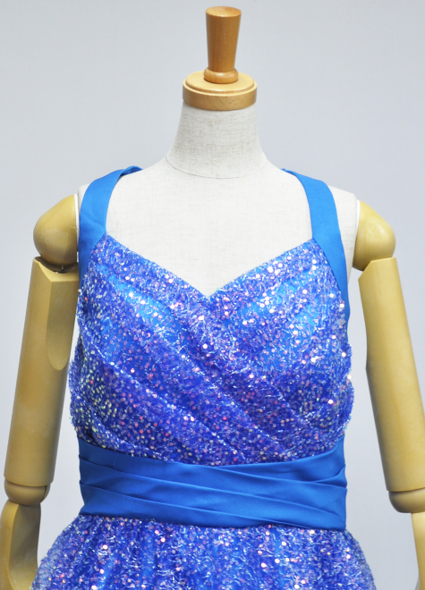 ・ブルー色の生地にゴールドのスパンコール