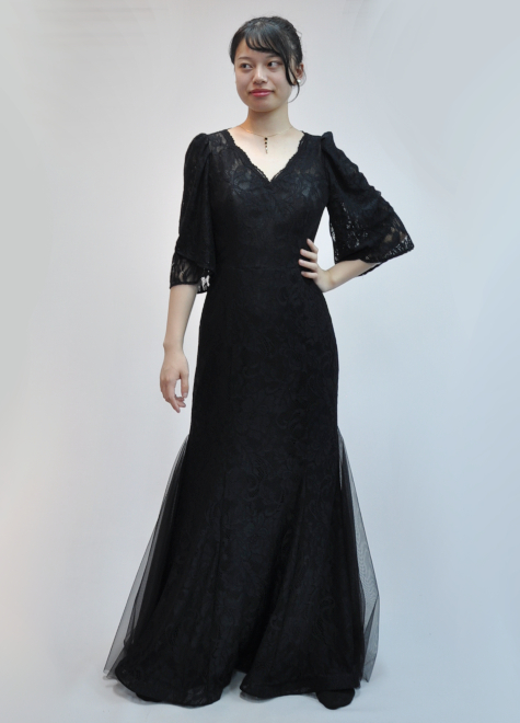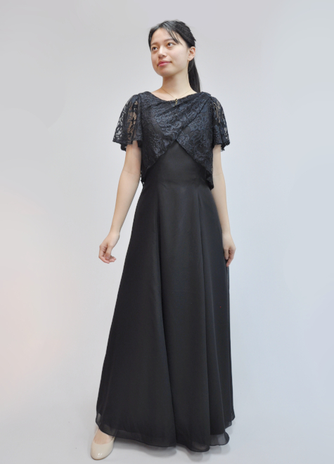 ドレス専門店。黒の演奏会ドレス、ステージドレス小柄サイズな方向け、演奏会用大きいサイズドレス、袖ありロングドレスも。
