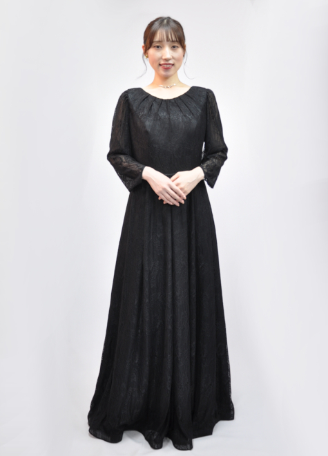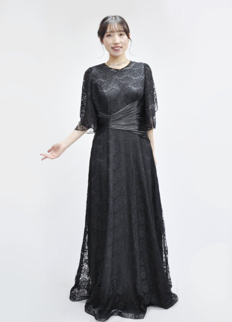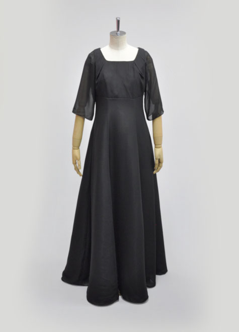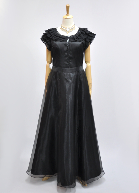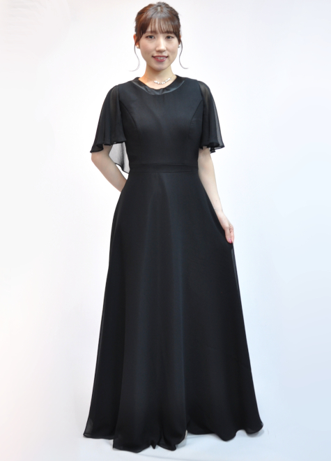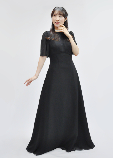 ドレス専門店。黒の演奏会ドレス、ステージドレス小柄サイズな方向け、演奏会用大きいサイズドレス、袖ありロングドレスも。